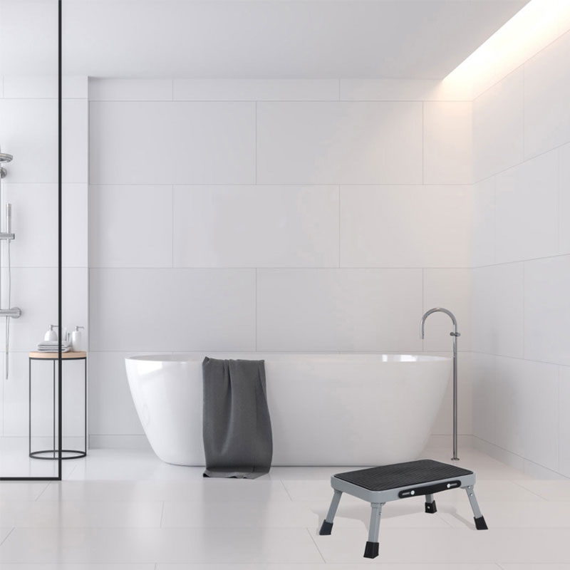 SAVE STORAGE SPACE Folding to a thickness of only 4cm, this step stool can be stored and carried with ease.