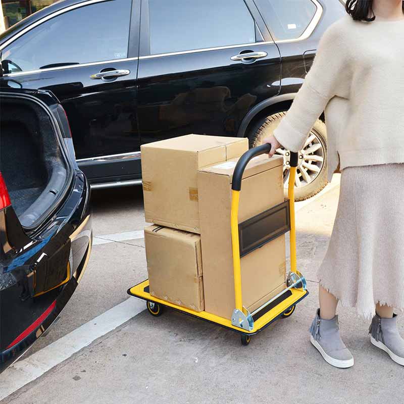 Our customers love to use the push cart for a variety of different needs. Whether you’re moving household items, wood planks or luggage, this dolly can do it all! And regardless of where it’s used, the foldable structure is perfect for easy storage in your garage, basement, office, storage closet or warehouse.
